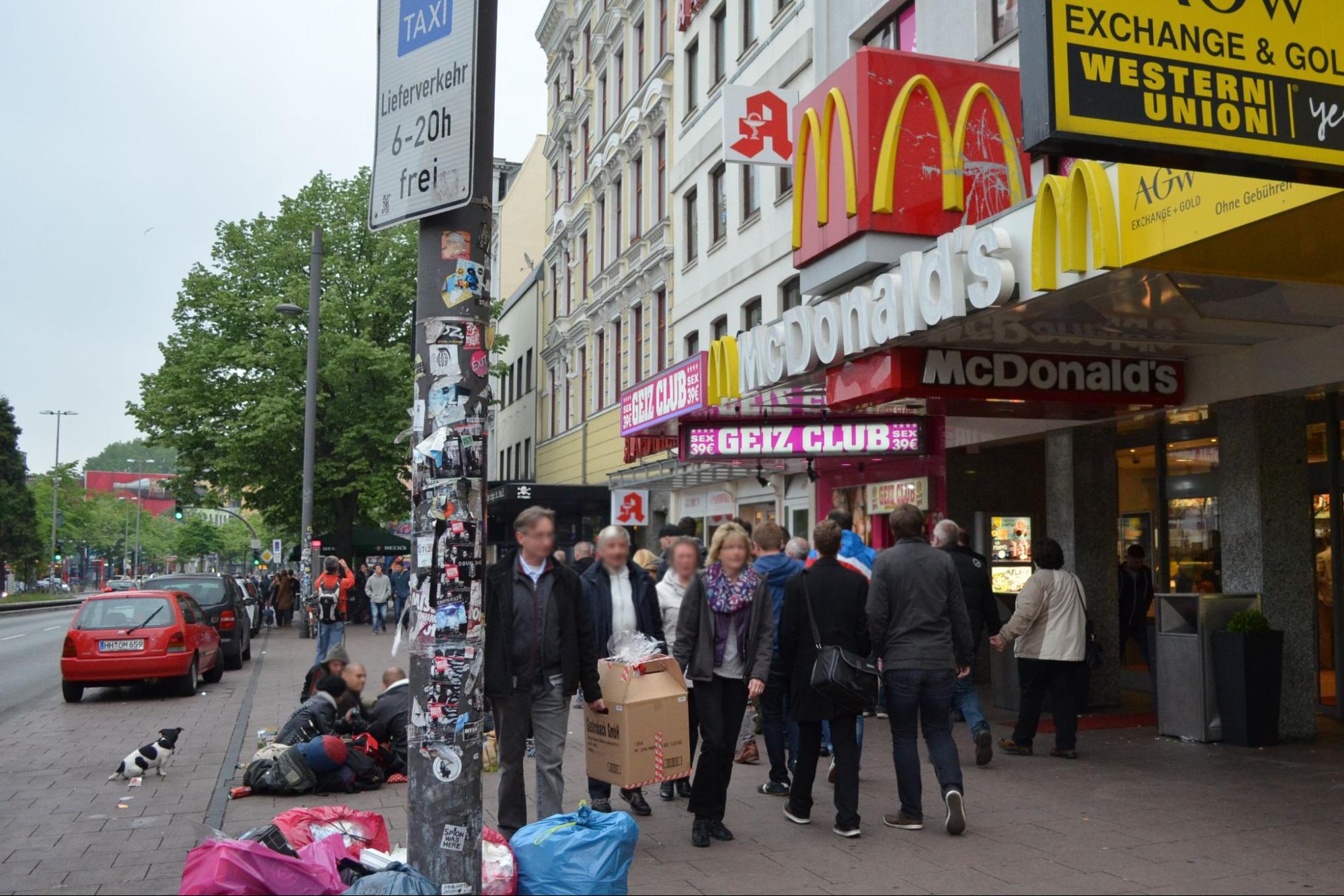 ビートルズがドイツで初ライブした場所「Indra Club 64」がある有名な通りでは、エロくない老若男女の観光客が歩いていたのですが、たまたま見たヒッピーのおっちゃんが路上でエロい態度をとっていたので、エロい場所だと勘違いしてしまいました。