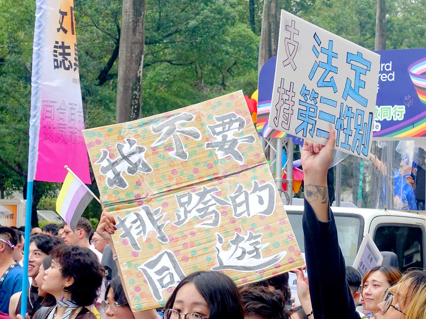 今年目立ったのが、トランスジェンダー差別について言及したプラカード。実はパレード開催の2週間ほど前、あるパレードスタッフがSNS上にてトランスフォビアと受け取れる発言をし、炎上する事件が起こっていました。