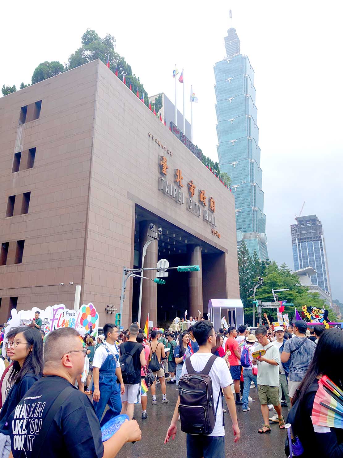 2時間半ほどをかけ、ぐるっと台北の街を練り歩いたパレードは、出発地点の台北市政府前へ。あいにくの天気ではありましたが、今年も力強さと祝福に満ち溢れた1日となりました。